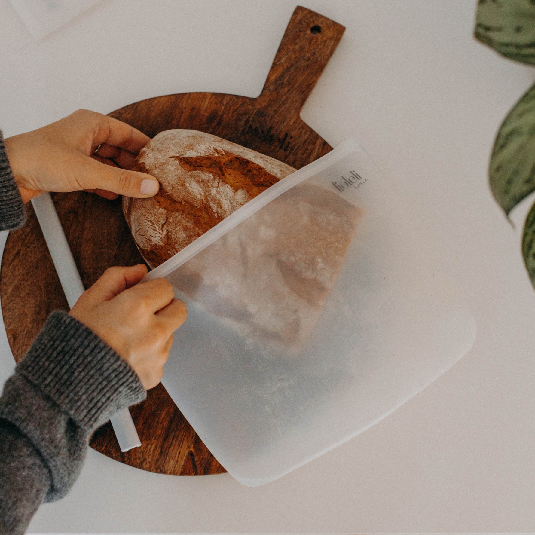 Für noch mehr Frische haben wir extra nochmal nachgelegt und unsere beliebten Aufbewahrungsbeutel noch größer gemacht. In den 2000 ml Beutel passt locker ein halbe Brot, das du darin super einfrieren kannst.