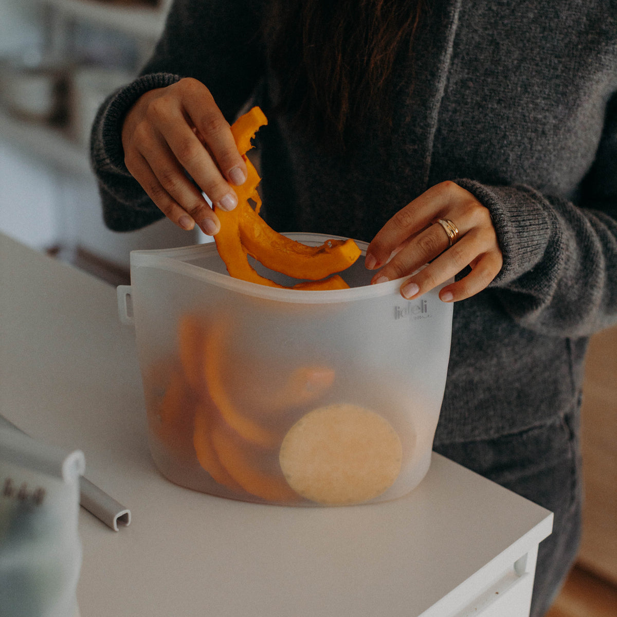 Unsere Beutel bestehen aus hochwertigem, lebensmittelechtem Silikon – langlebig, flexibel und geruchsneutral.