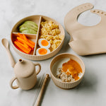 Die Bowl besteht aus 100% lebensmittelechtem Silikon, ist BPA-frei und absolut sicher für Kinder. Dank des flexiblen Materials ist sie bruchfest, langlebig und kann problemlos in der Spülmaschine gereinigt werden. Die glatten, abgerundeten Kanten machen es einfach, Nahrung aufzunehmen, während die hohe Stabilität für weniger Chaos am Tisch sorgt.