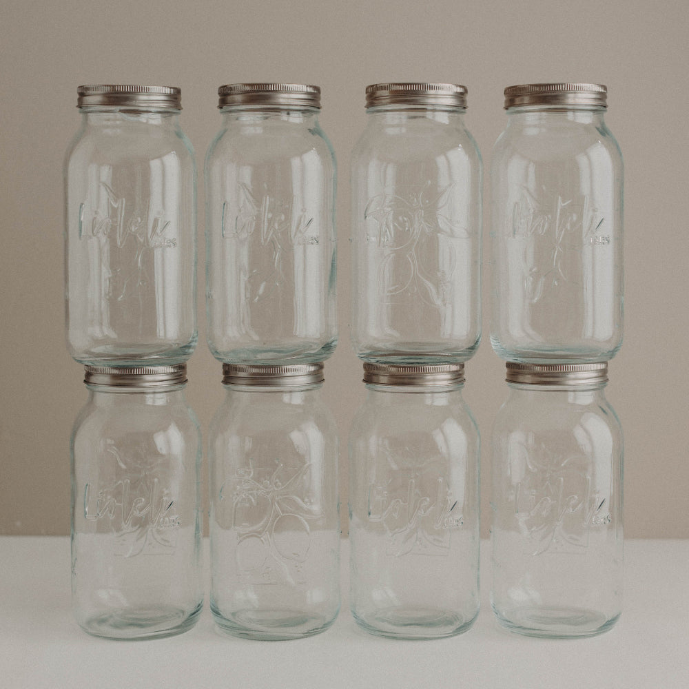 Das Lioleli Mason Jar Set bietet dir alles, was du für eine moderne, gut organisierte Küche brauchst. Die großzügigen 2000 ml Jars sind ideal, um große Mengen an Lebensmitteln stilvoll aufzubewahren – perfekt für Vorräte wie Mehl, Nudeln, Haferflocken, Hülsenfrüchte oder selbstgemachte Meal-Prep-Gerichte. Dank des großen Fassungsvermögens lassen sich auch Suppen, Eintöpfe oder ganze Familienportionen problemlos abfüllen, einfrieren, fermentieren oder einkochen.