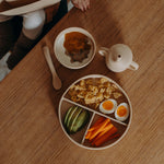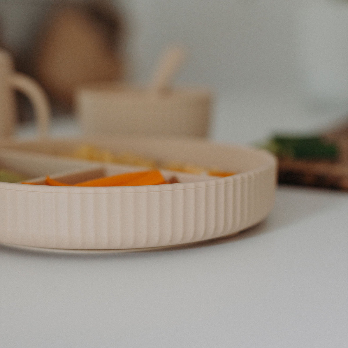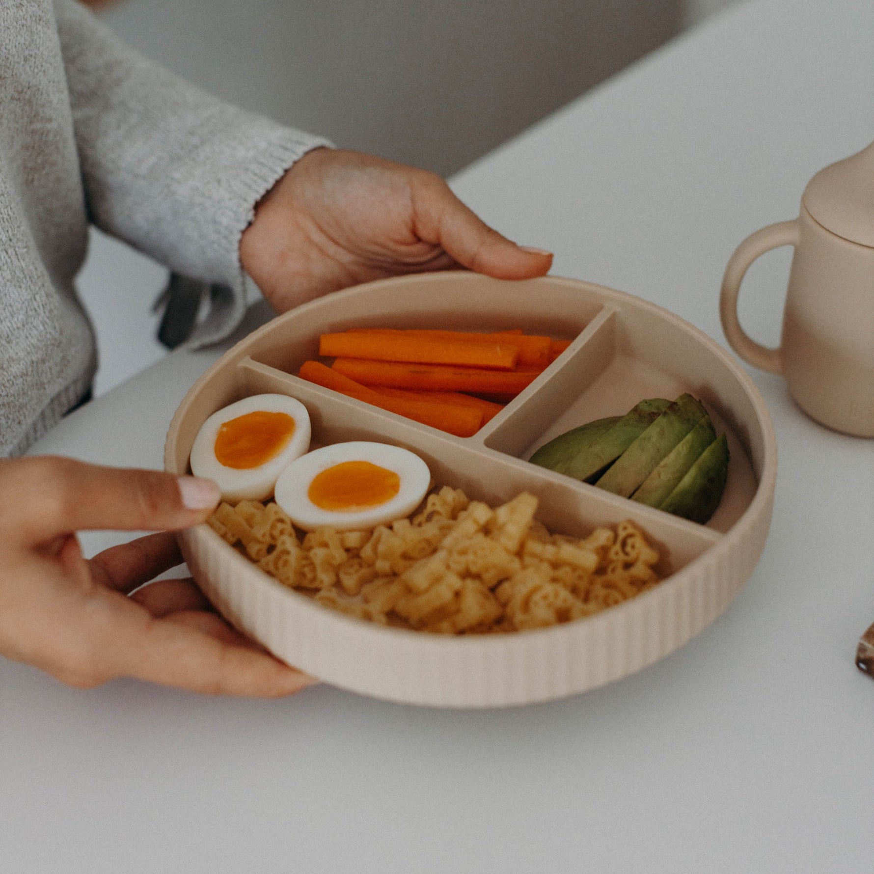 Der Silikon-Menüteller für Kinder mit 3 praktischen Unterteilungen ist perfekt für ausgewogene Mahlzeiten und bietet die Möglichkeit, verschiedene Speisen getrennt anzubieten. Der starke Saugnapf an der Unterseite sorgt dafür, dass der Teller fest auf dem Tisch oder Hochstuhl haftet, was ein Umkippen oder Verrutschen verhindert – ideal für kleine Essanfänger!