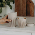 Der schönste Kaffeebecher für deinen Coffee to go! Der wiederverwendbare Kaffeebecher besteht aus dem Abfall der Kaffeeproduktion. Daher auch der Name "Huskee Cup", weil das Material aus recycelten Kaffeebohnenschalen (Coffee Husk) und Biopolymer hergestellt wird. Durch die wunderschöne und geriffelte Optik bleibt der Kaffee länger heiß und der Becher lässt sich dabei problemlos halten. Ob du darin deinen köstlichen Kaffee zu Hause ohne Deckel oder unterwegs mit Deckel genießen möchtest... der Huskee Kaffeebecher macht immer eine gute Figur.