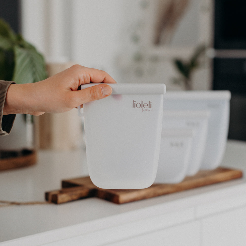 Unsere Beutel bestehen aus hochwertigem, lebensmittelechtem Silikon – langlebig, flexibel und geruchsneutral.