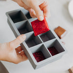 In der biegbaren Eiswürfelform aus Silikon können übergroße, quadratische Eiswürfeln gemacht werden. Diese eignen sich optimal für frisch zubereitete Cocktails, Erfrischungsgetränke oder auch deinen Iced Coffee. Für das gewisse Etwas kannst du je nach Gebrauch, Granatapfelkerne, Zitronen, Minze oder andere Kräuter dazu einfrieren.