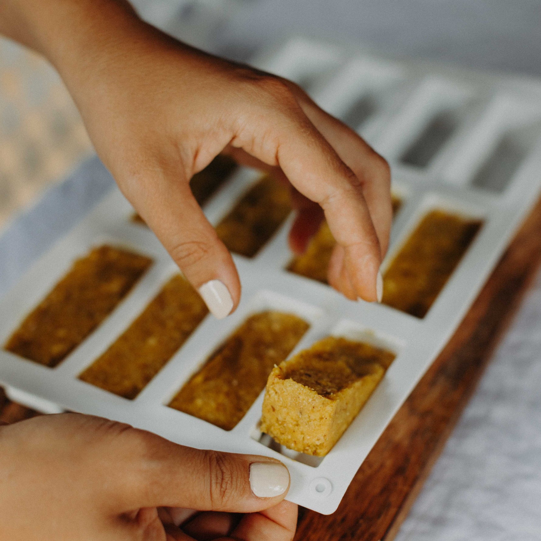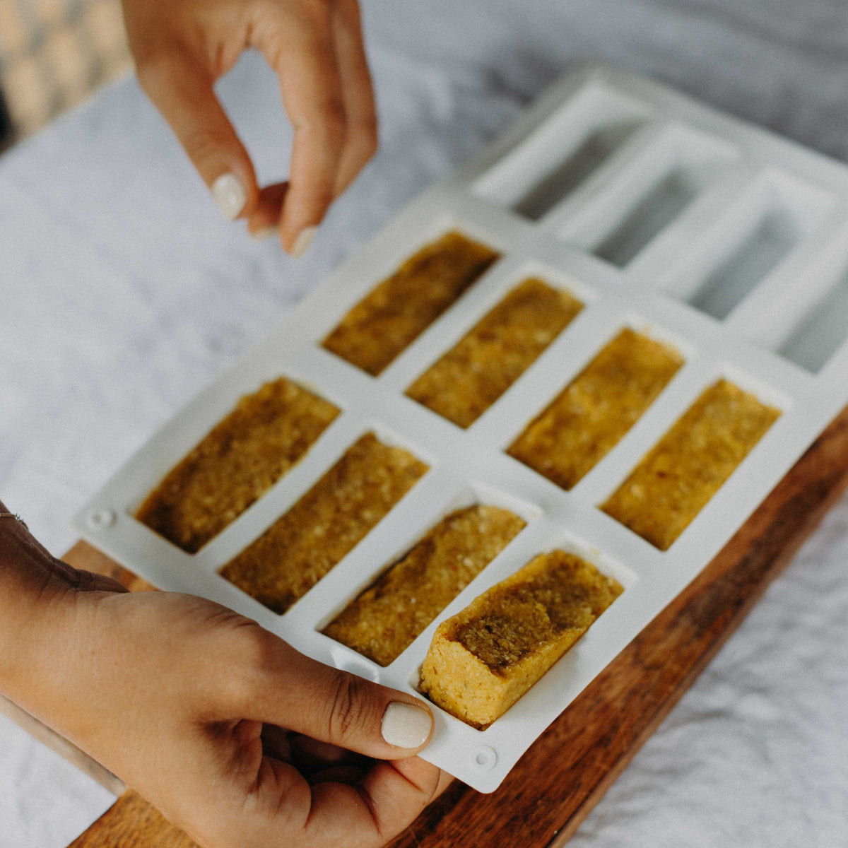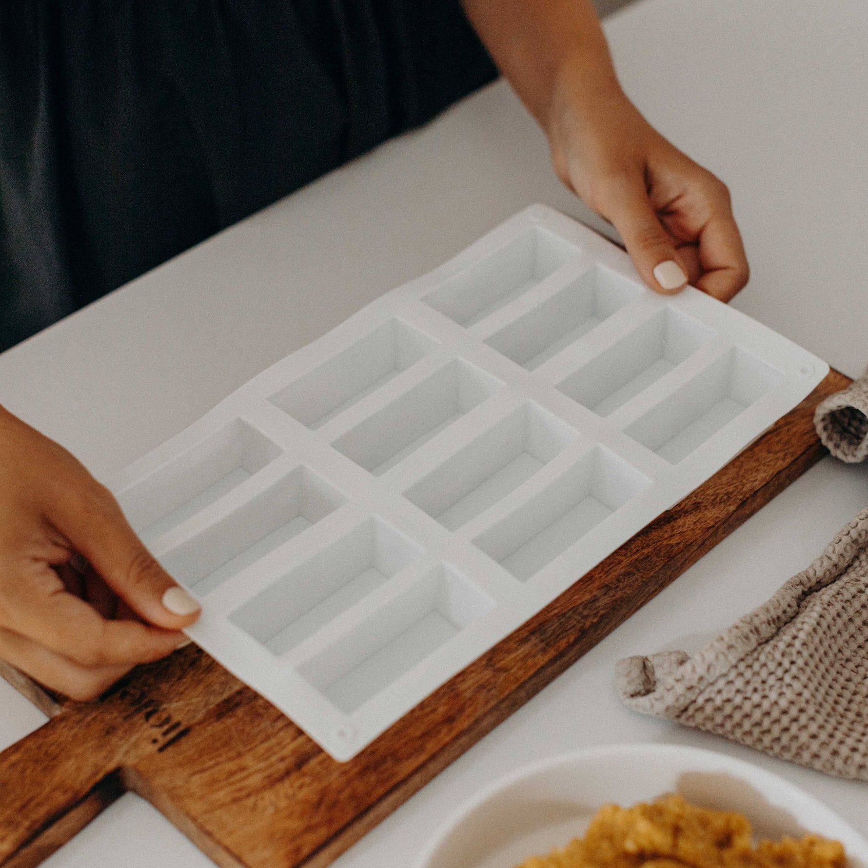 Vielseitige und praktische weiße Riegelform aus Silikon, ideal für die Zubereitung von Müsliriegeln, Schokoriegeln und selbstgemachten Eisriegeln. Die Riegelform ist ein unverzichtbares Utensil für jede Küche und bietet unzählige Möglichkeiten, deine Lieblingssnacks selbst zu kreieren.