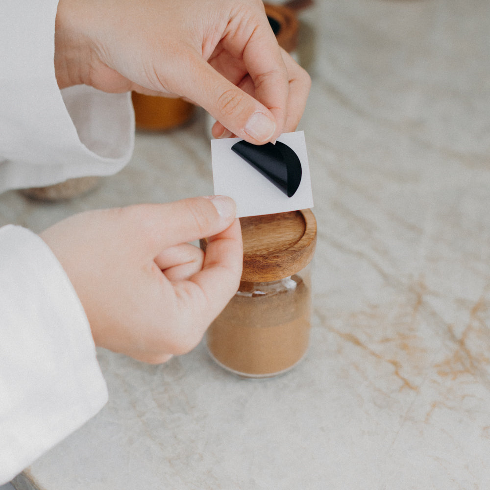 Mit den Tafelfarbestickern schaffst du noch mehr Ordnung in deiner Küche und hast den optimalen Überblick über all deine Zutaten. Die Sticker einfach abziehen, auf den Deckel kleben und mit dem Kreidestift beschriften. Solltest du den Inhalt ändern, kannst du die Sticker einfach mit einem feuchten Tuch abwischen und neu beschriften.