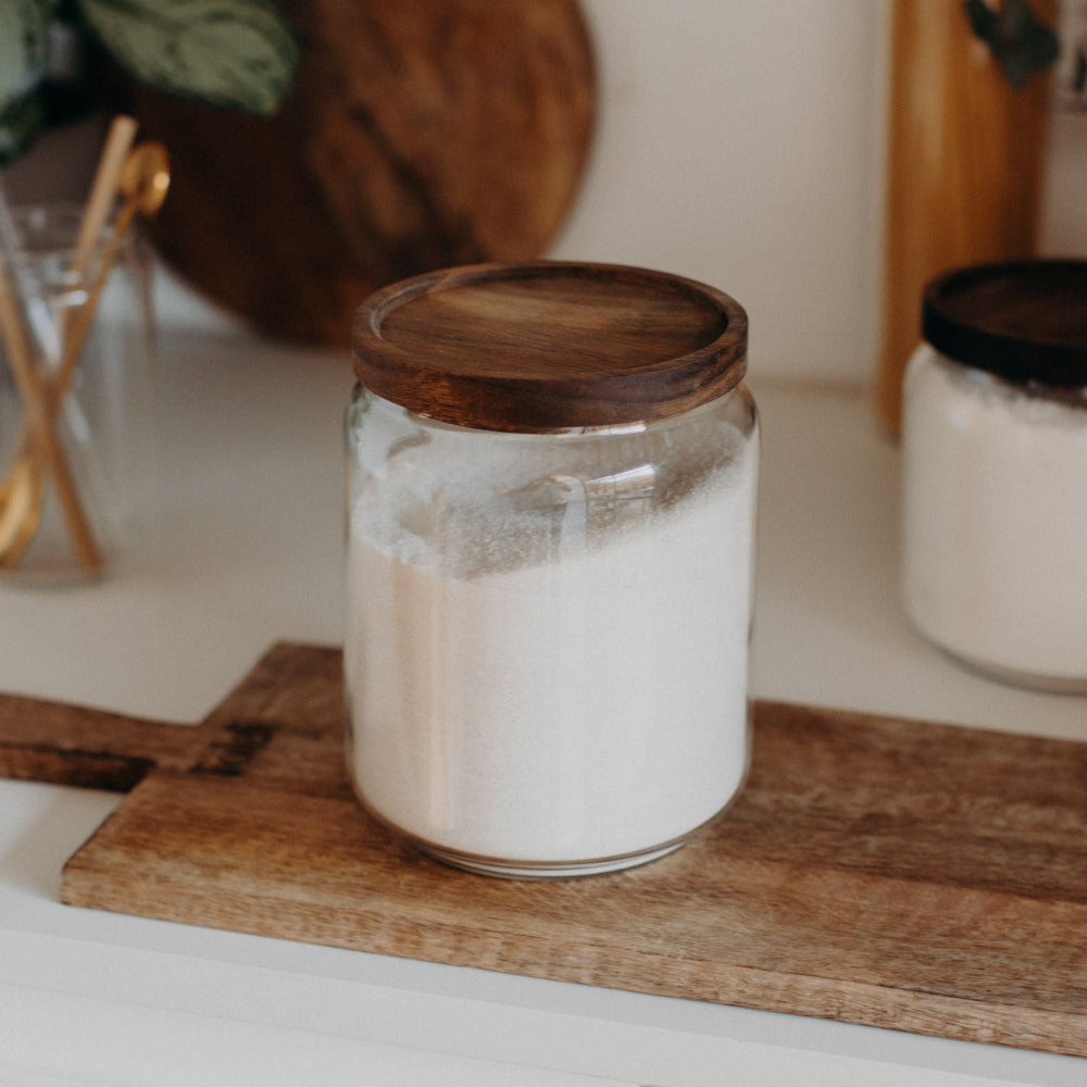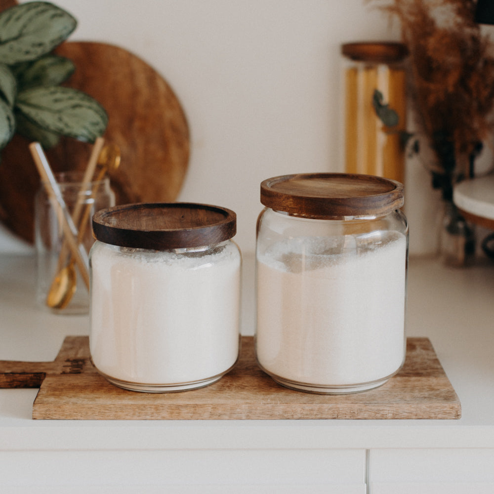 Mehl und Zucker in den Papier- oder Plastikverpackungen produzieren nicht nur viel zu viel Müll, sondern sind auch oft sehr unhandlich. Egal wie vorsichtig man die Packung öffnet, ein bisschen Inhalt geht immer daneben. Die Öffnung der Jumbo Vorratsgläser ist 14cm breit. Du kannst also super einfach im verpackungsfreien Supermarkt deine Vorratsgläser befüllen und anschließend mit einem Löffel das Mehl, den Zucker oder andere Zutaten aus dem Glas holen, ohne zu kleckern. Der Akazienholzdeckel verschließt luftdicht und lässt sich leicht abnehmen.