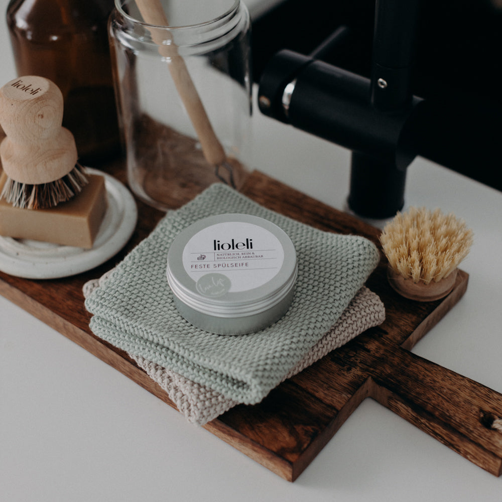Ein nachhaltiges Zerowaste-Produkt, ohne dem wir uns unsere Küche kaum mehr vorstellen wollen: Die feste Spülseife. Geschirr, Pfannen, Oberflächen und Waschbecken lassen sich mit der festen Spülseife bestens reinigen, wobei sie einen angenehmen Zitrusduft hinterlässt. In der Dose lässt sich das Reinigungsmittel platzsparend verschließen und kann bei Bedarf auch unkompliziert eingepackt und mitgenommen werden - z.B. auf Urlaube oder zum Campen.