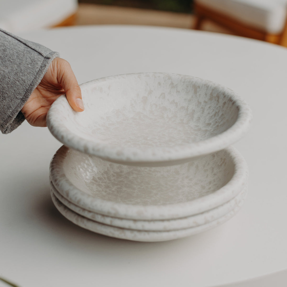 Lua“ – portugiesisch für „Mond“ – steht für Stille, Weichheit und Zeitlosigkeit. Die Kollektion ist gemacht für Menschen, die im Kleinen das Schöne sehen. Jede Schale wird von Hand glasiert, wodurch feine Farbverläufe und Unregelmäßigkeiten entstehen – jedes Stück ein echtes Unikat.
