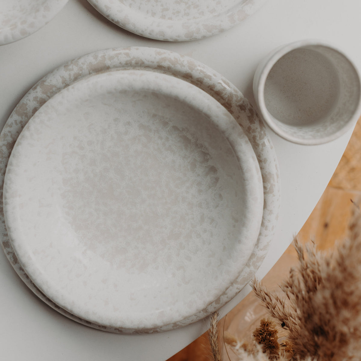 Unsere Keramik ist pflegeleicht, aber freut sich über etwas Aufmerksamkeit: Vermeide starke Temperaturschwankungen (z. B. kalte Flüssigkeit in heißes Geschirr) und verwende beim Stapeln weiche Unterlagen, um Kratzer zu verhindern.