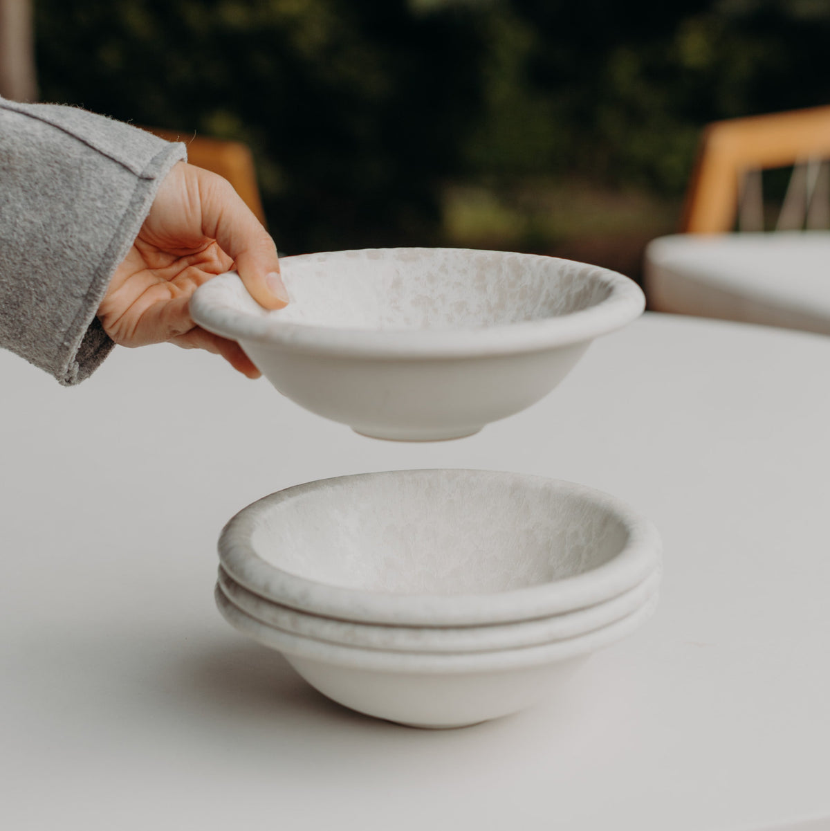 „Lua“ – portugiesisch für „Mond“ – steht für Stille, Weichheit und Zeitlosigkeit. Diese Kollektion ist für Menschen gedacht, die im Kleinen das Schöne sehen. Jedes Stück wird in Portugal aus Steinzeug gefertigt und von Hand glasiert – so entsteht eine lebendige Oberfläche mit individueller Glasur, die nie ganz gleich ist.