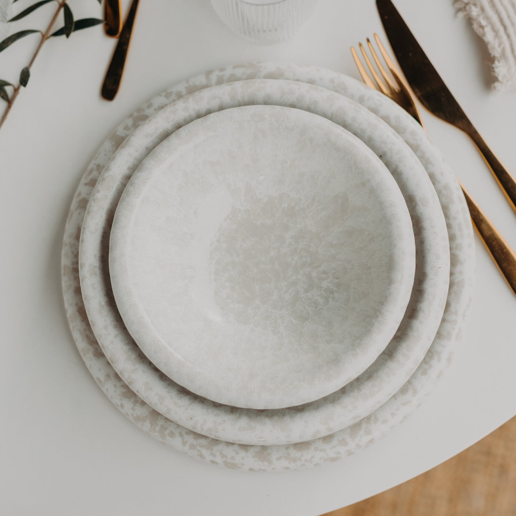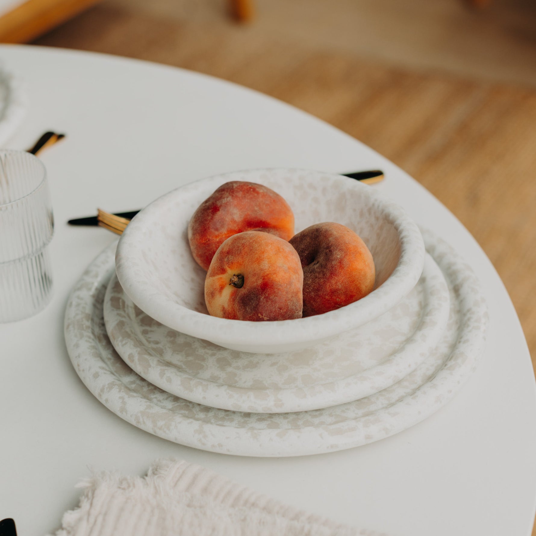 Feiner Besteckabrieb kann bei matten Glasuren mit der Zeit auftreten – er ist nur oberflächlich und lässt sich leicht mit Natron und einem weichen Tuch entfernen.