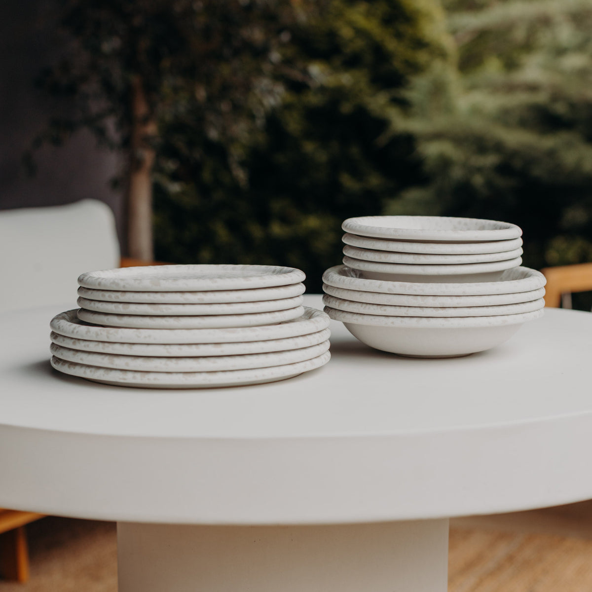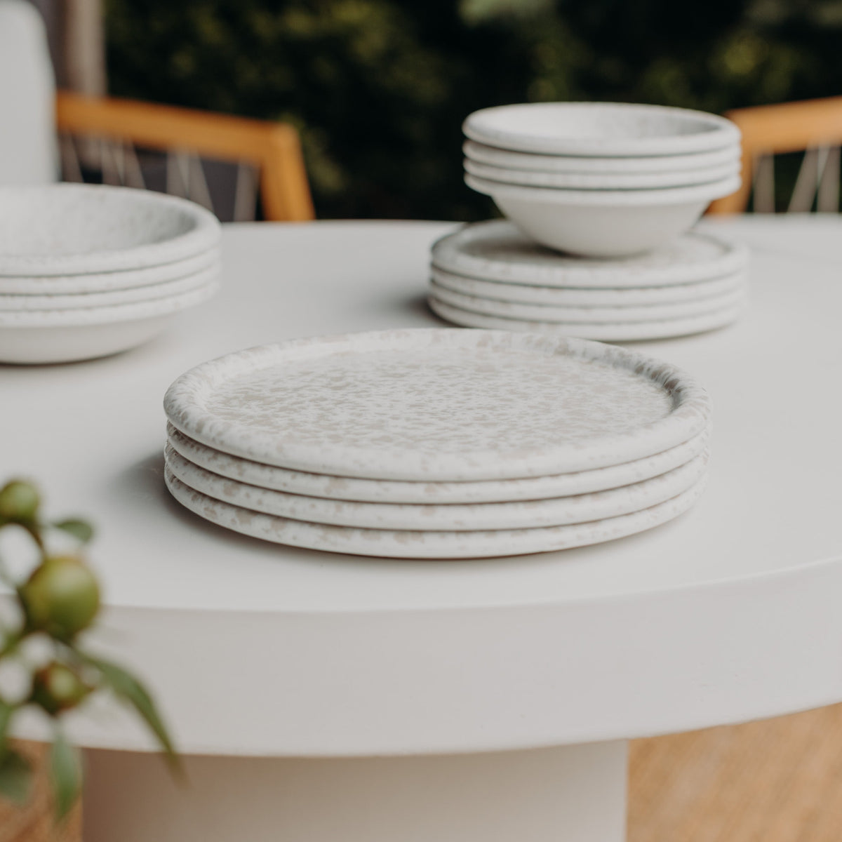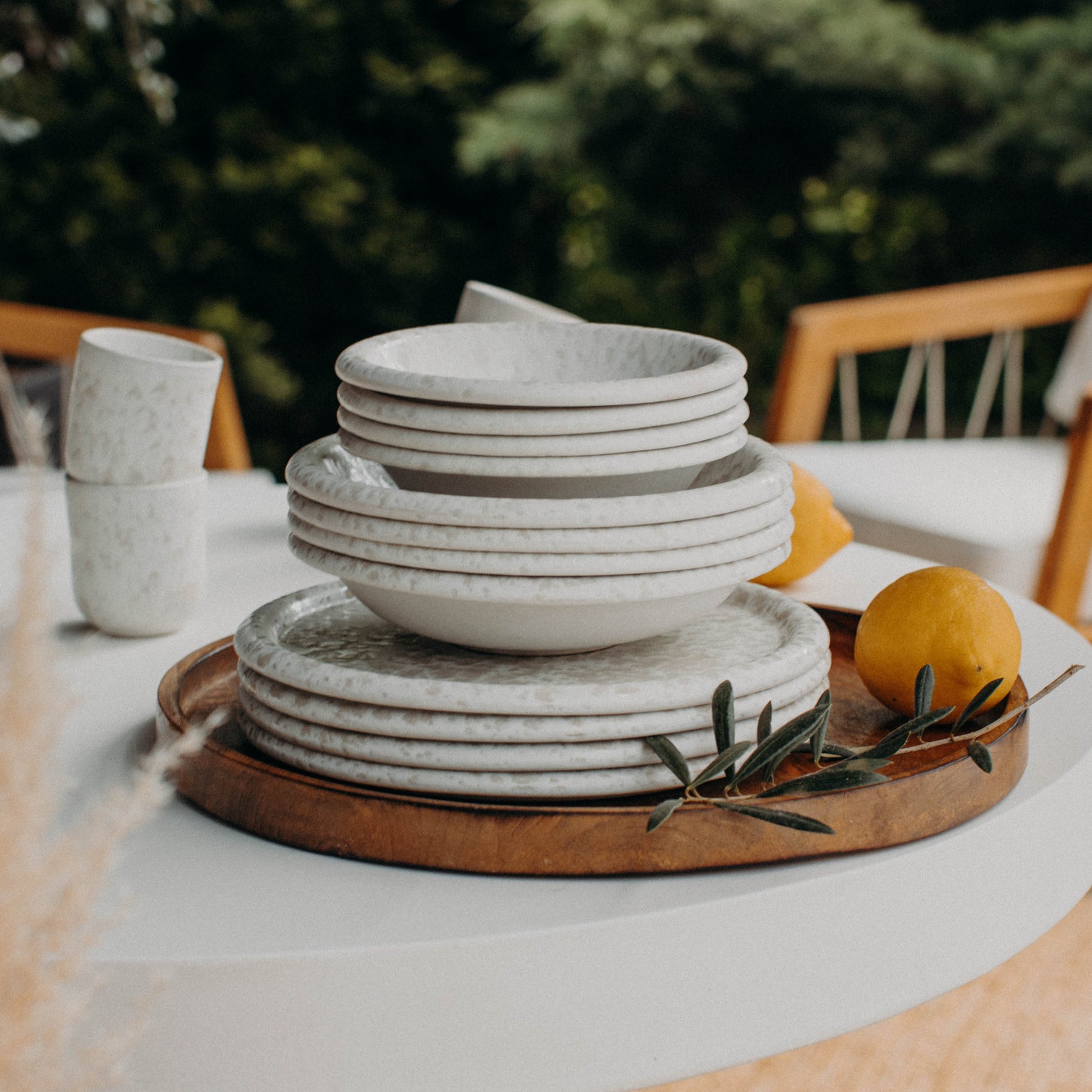 Die durchdachte Form erlaubt es, die Teller platzsparend zu stapeln – im Schrank genauso wie gut einschlichtbar in der Spülmaschine. Robust, funktional und dennoch stilvoll – ein Stück, das bleibt.