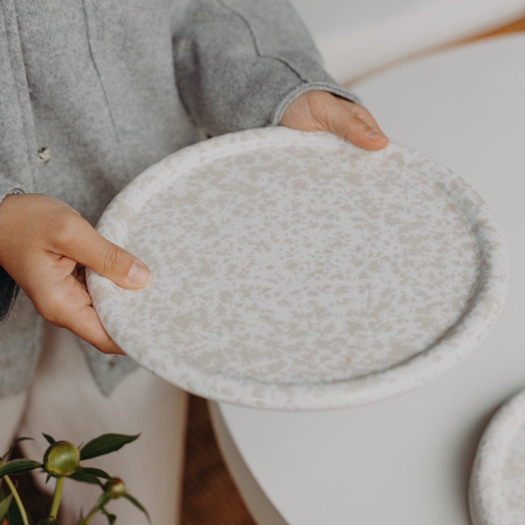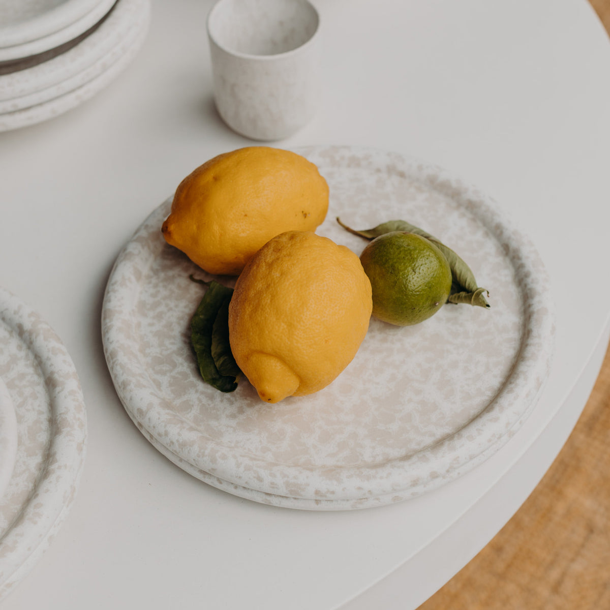 Hergestellt in einem kleinen Familienbetrieb in Portugal, besteht jeder Teller aus europäischem Steinzeug und wird bei 1200 °C gebrannt. Die matte Oberfläche mit sanften Farbverläufen macht jedes Stück zu einem Unikat.