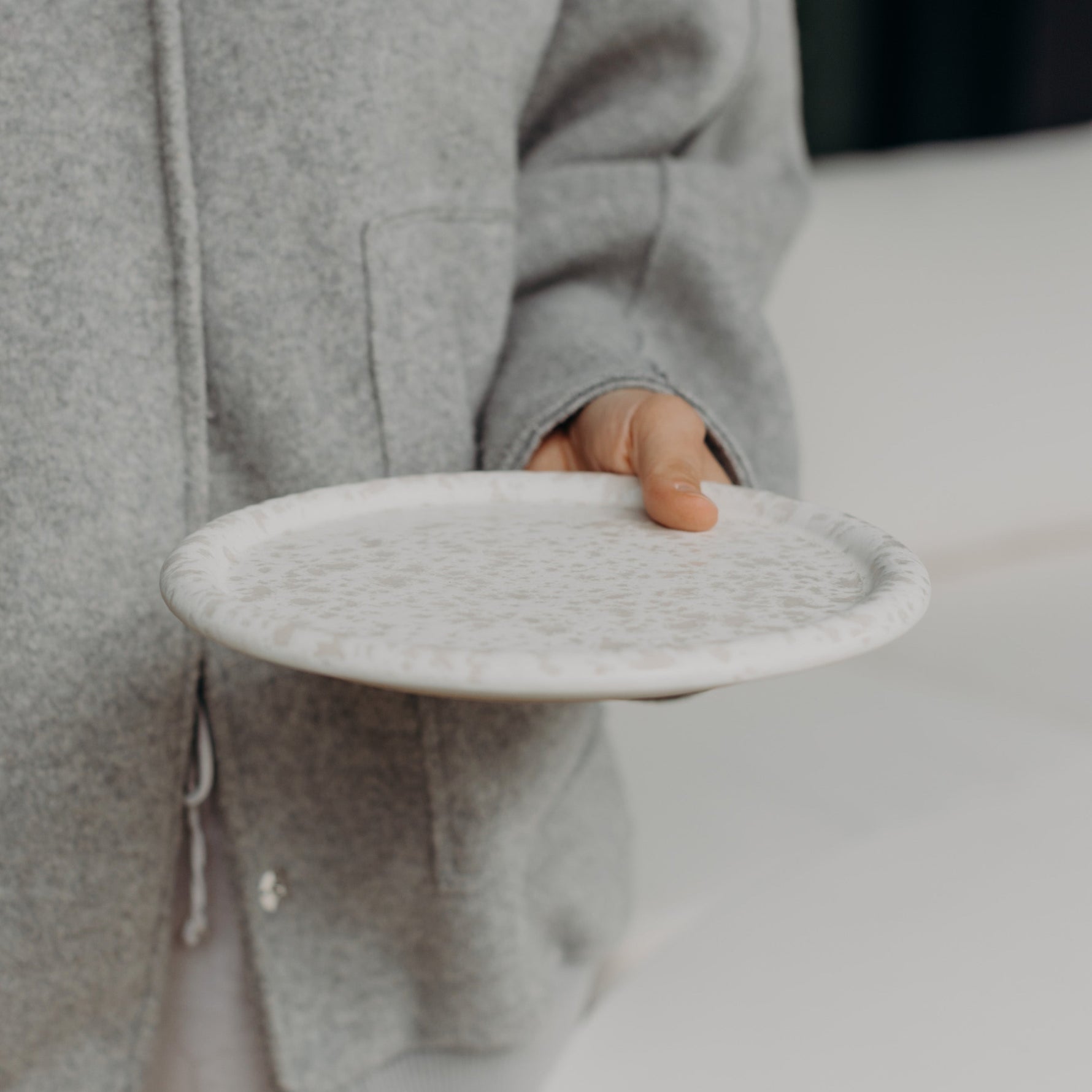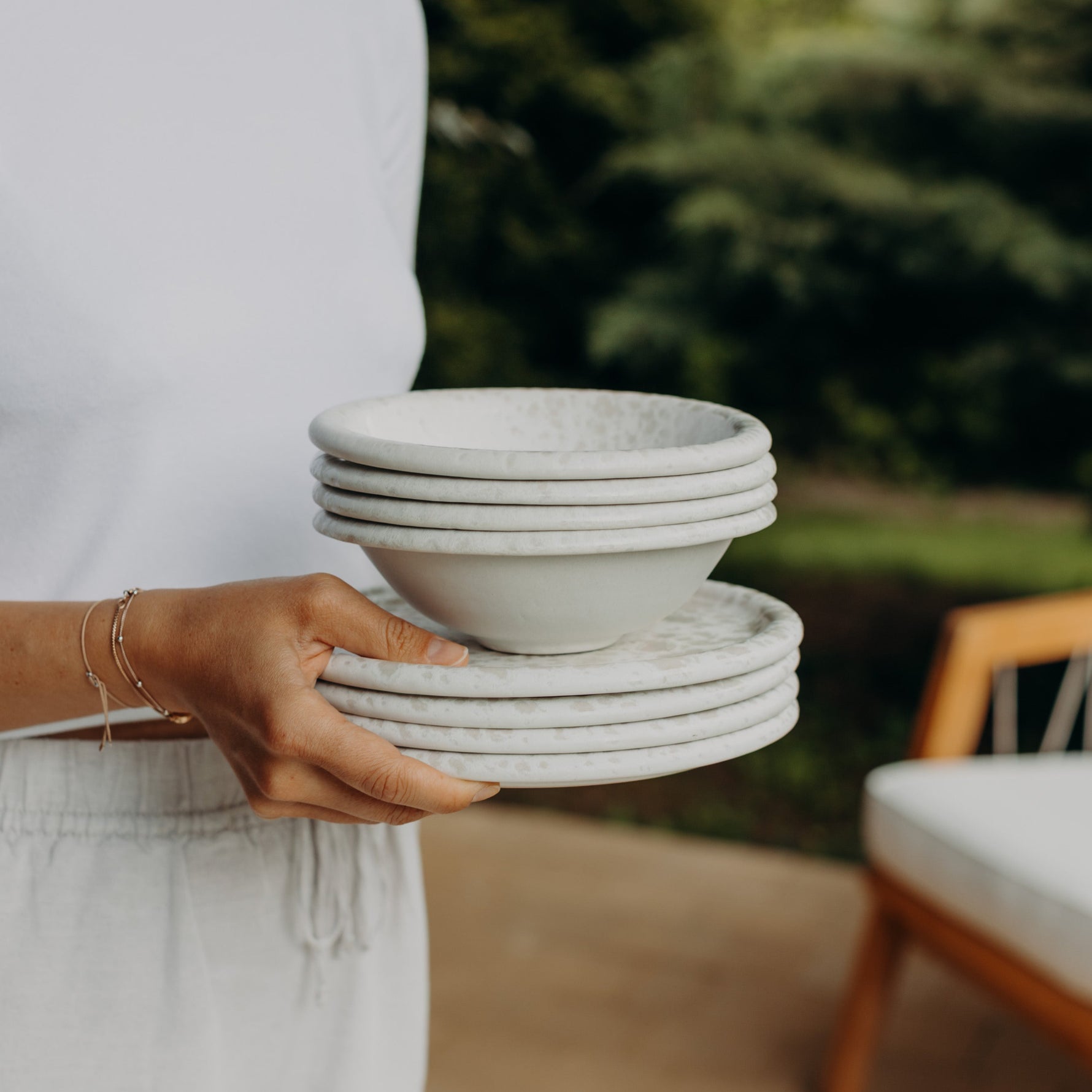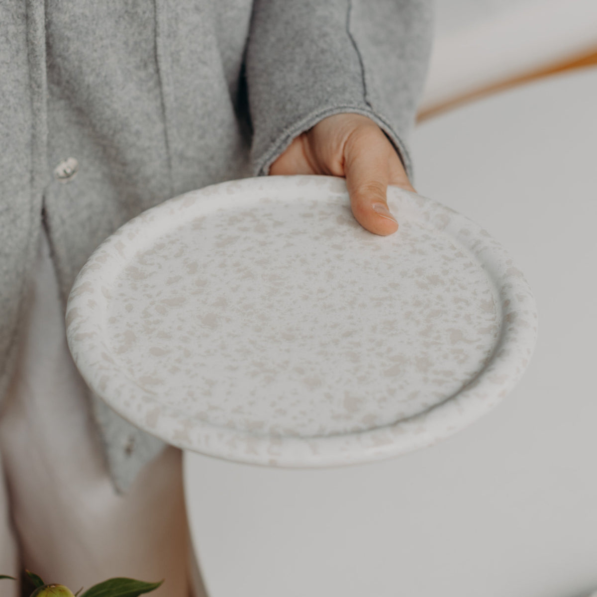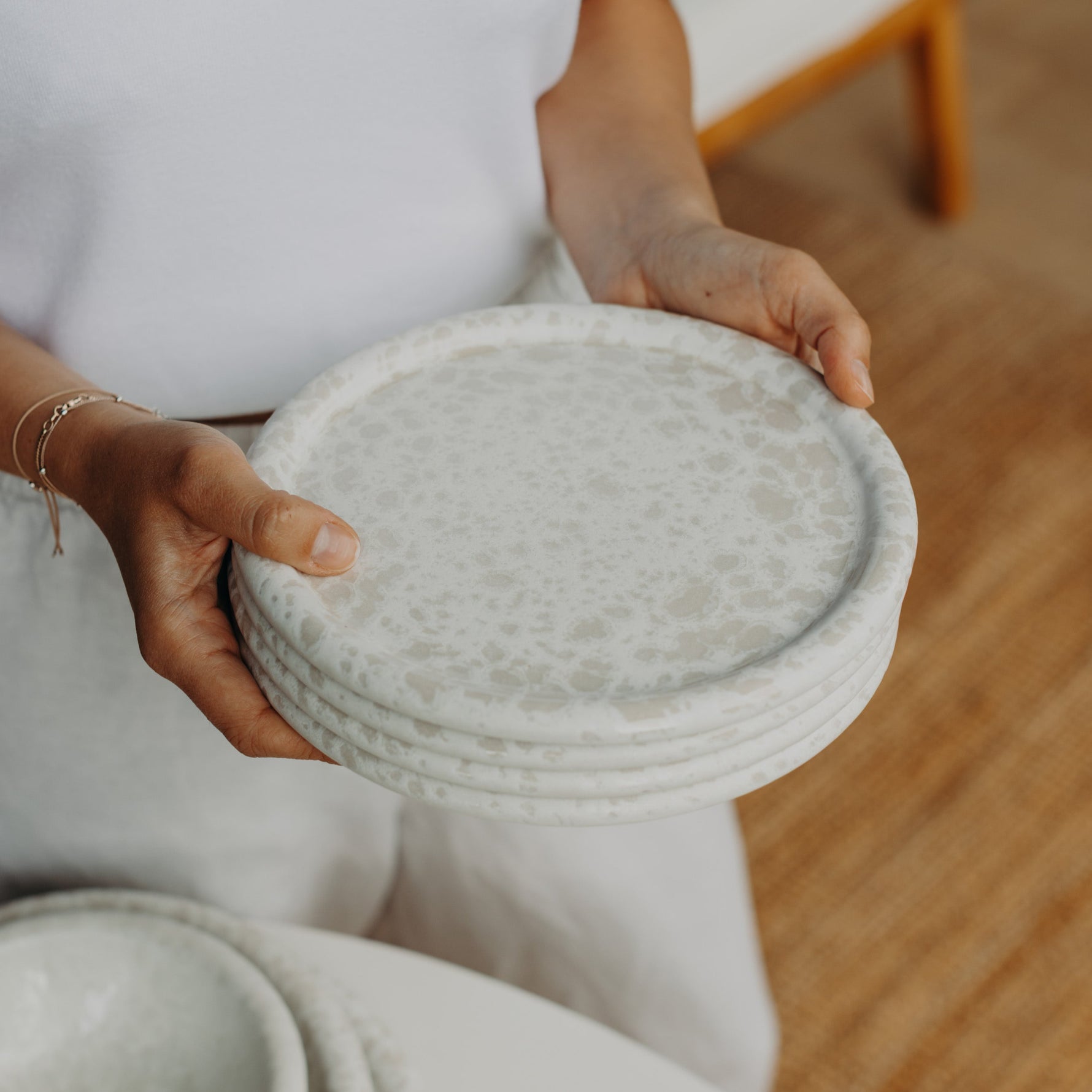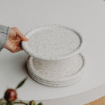 Jeder Teller wird aus europäischem Steinzeug gefertigt, in Portugal bei 1200 °C gebrannt und von Hand glasiert. Die natürlichen Abweichungen machen jedes Stück zu einem kleinen Unikat mit Charakter.