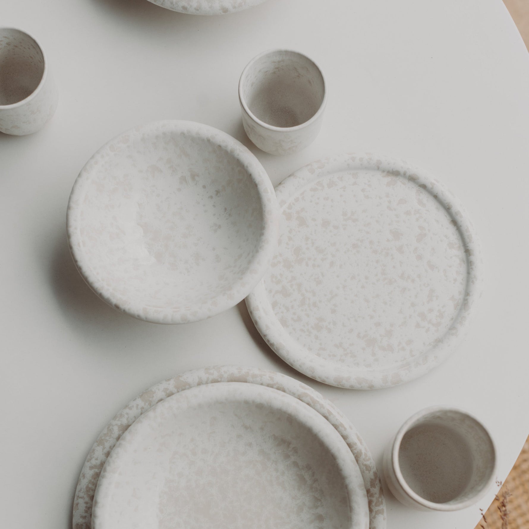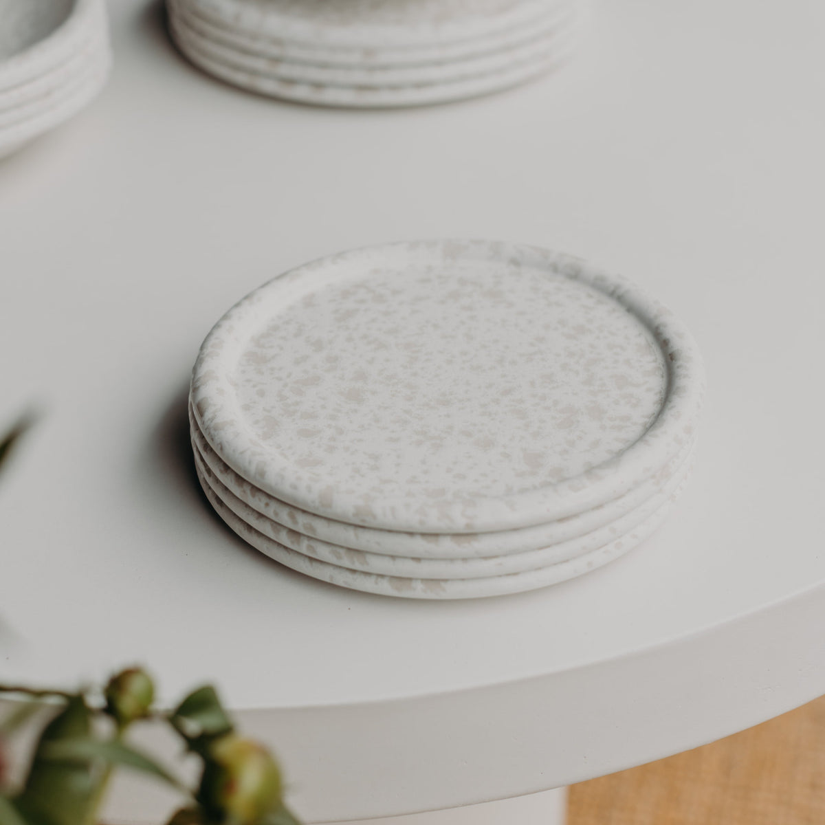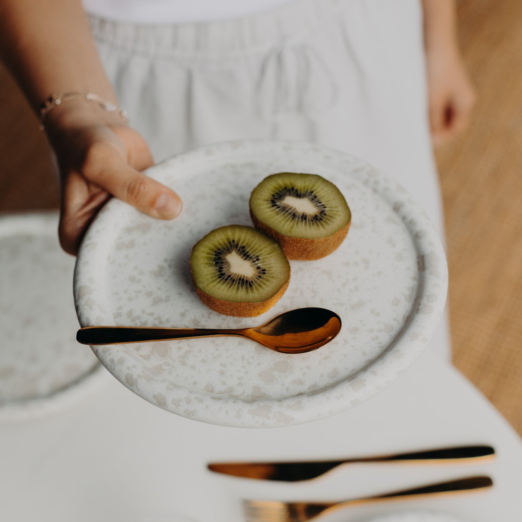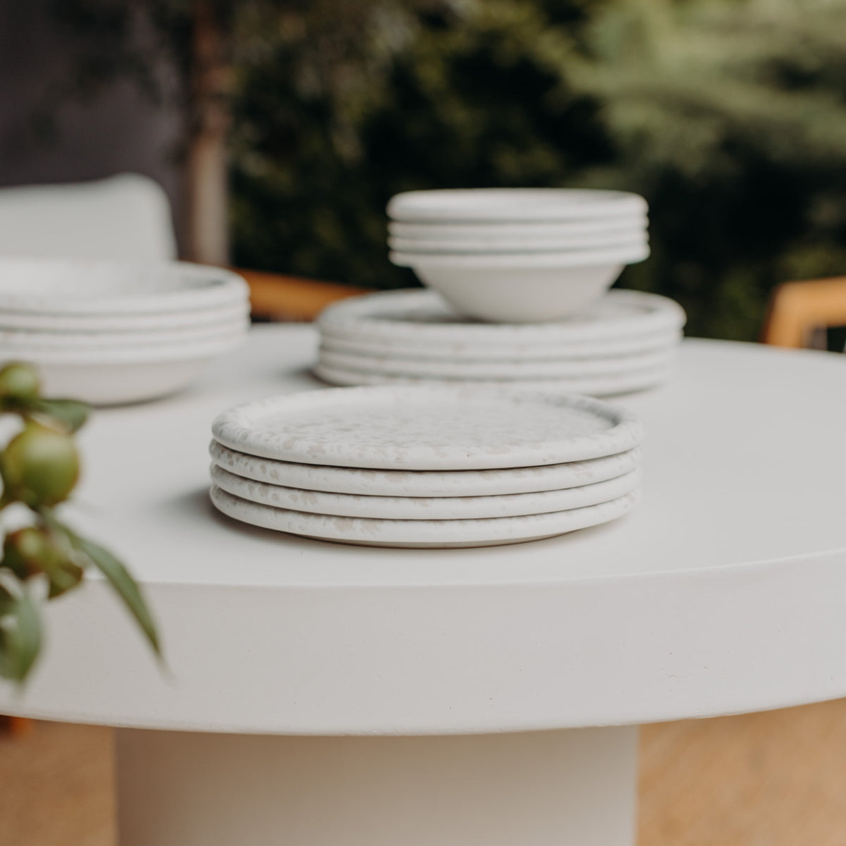 Jeder Teller wird aus europäischem Steinzeug gefertigt, in Portugal bei 1200 °C gebrannt und von Hand glasiert. Die natürlichen Abweichungen machen jedes Stück zu einem kleinen Unikat mit Charakter.
