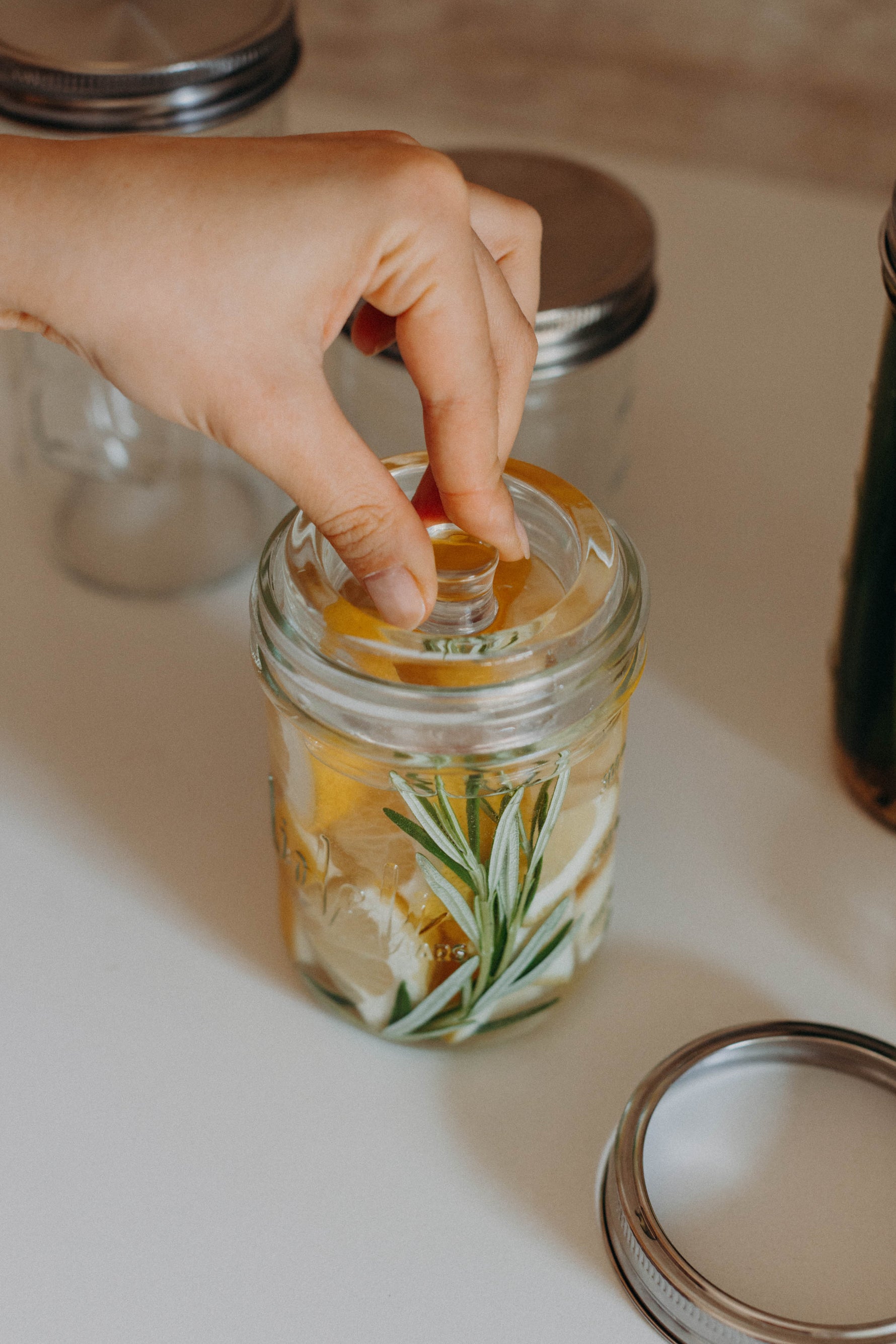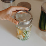 3. Abfüllen: In die Mason Jars schichten und mit den Glasgewichten beschweren.