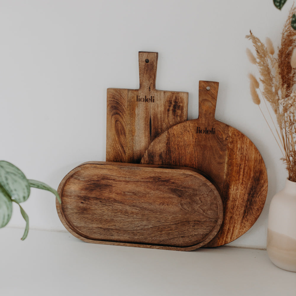 Mit diesen 3 Brettern bist du voll und ganz ausgestattet für Kochen, Servieren und Dekorieren. Das wunderschön gefertigte Tablett aus Mangoholz findet bei uns in vielen Bereich des Haushalts Gebrauch. Ob als Ablage neben der Spüle für Scheuerpaste, Spülbürste und Seife oder zum Servieren von Tee und Kaffee. Die Schneidebretter aus massivem Mangoholz sind super robust und bieten genug Platz, um gut arbeiten zu können. Auch zum Anrichten und Präsentieren eigenen sich unsere Hartholzbretter besonders gut.