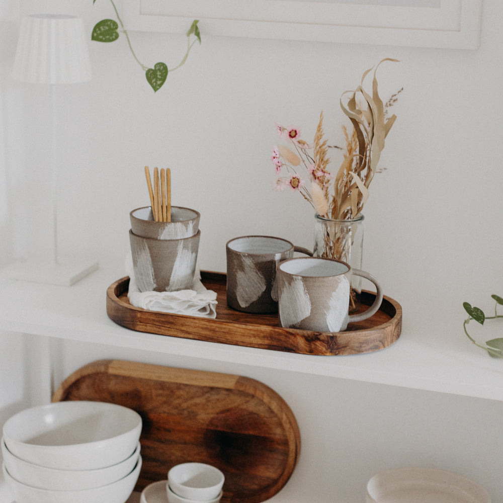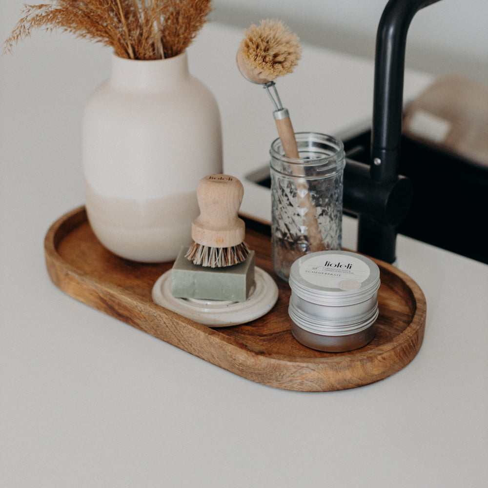 Vielseitig einsetzbar – ob als Ablage neben der Spüle für Spülbürste, Seife und Scheuerpaste oder zum stilvollen Servieren von Tee und Kaffee. Ein praktisches und zugleich dekoratives Element für jeden Wohnbereich.